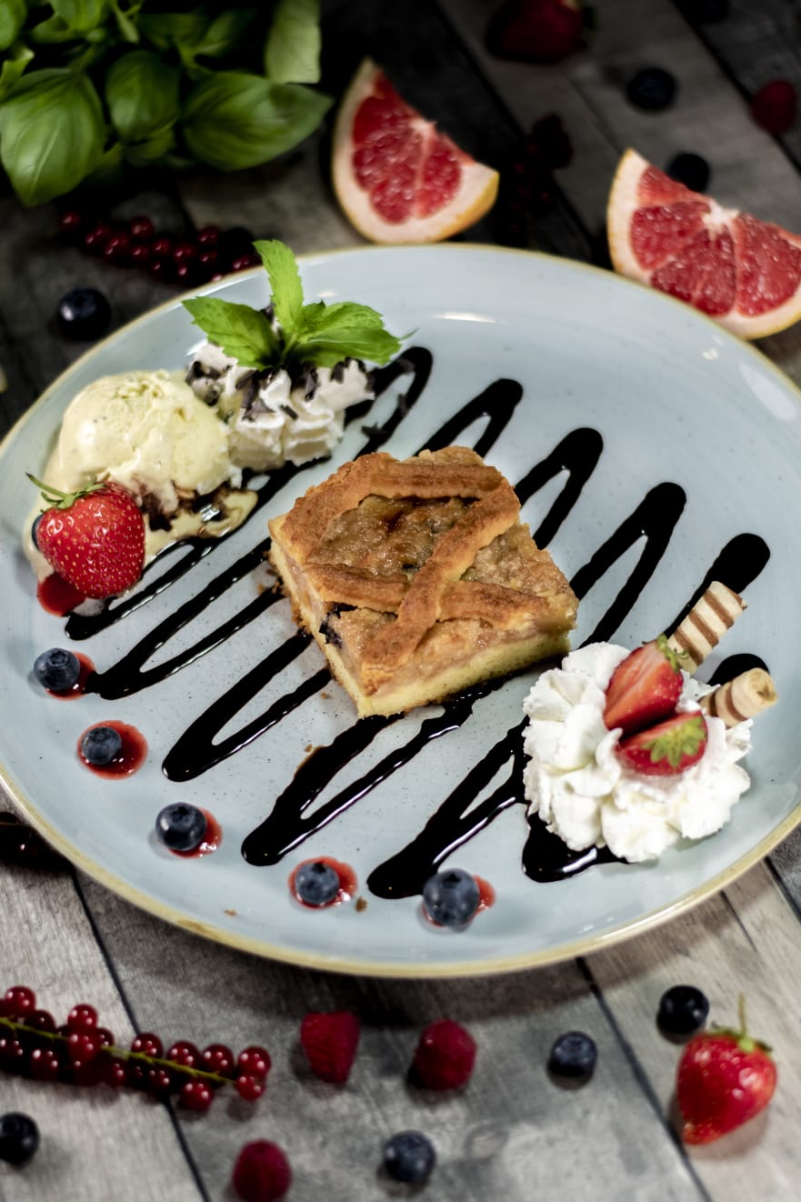 Gorąca szarlotka z lodami, przygotowywana według tradycyjnej receptury to nasz sztandarowy deser.